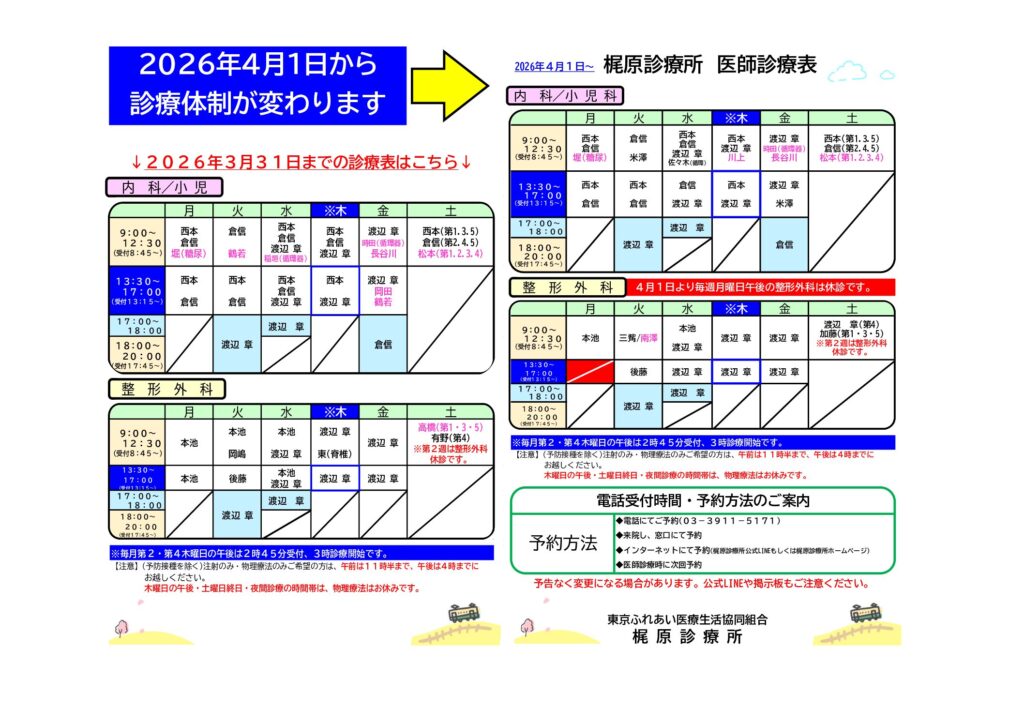 2026年4月1日から 梶原診療所の診療体制が一部変更となります。